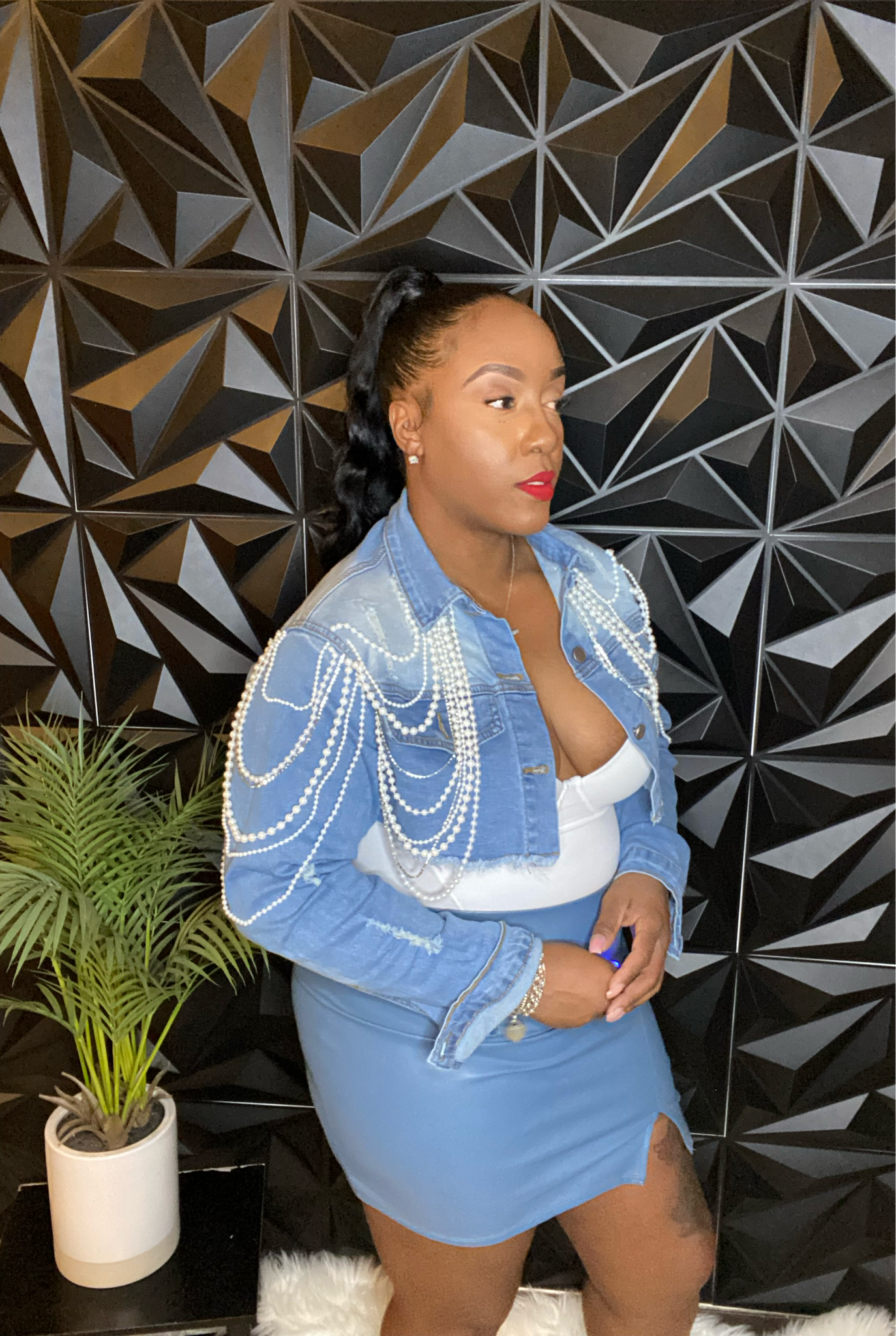 PEARLS FOR THE GIRLS CROP DENIM JACKET