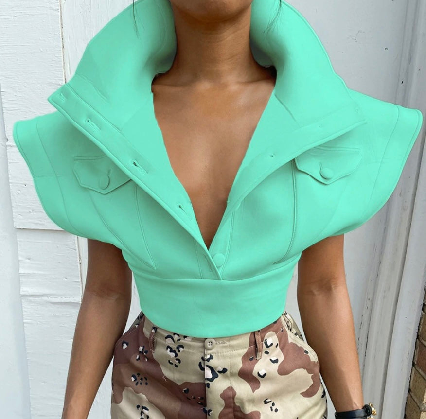 Supset cute top high collar, zipper in the back.