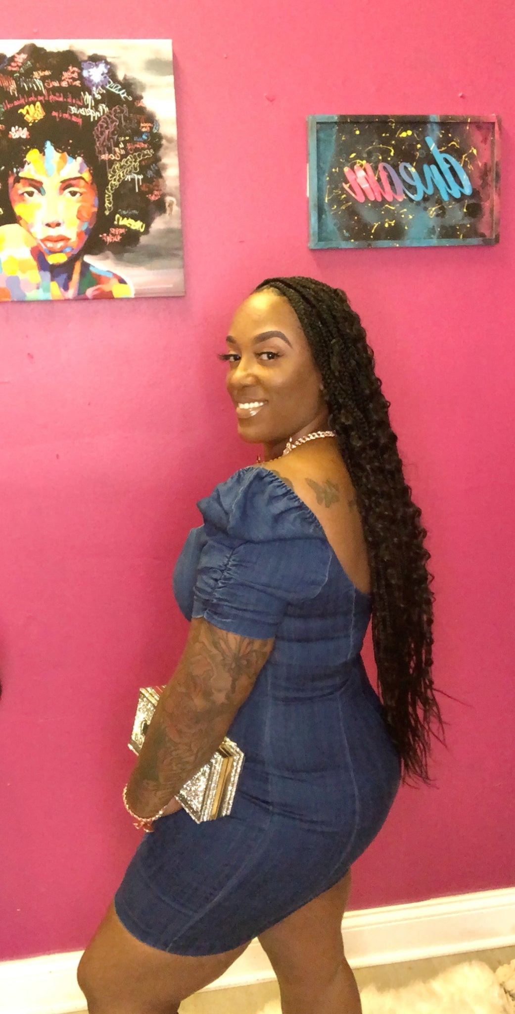 Puff Short sleeve bodycon denim dress