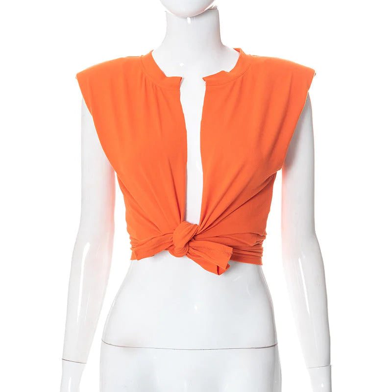 Shoulder pad tie up crop top